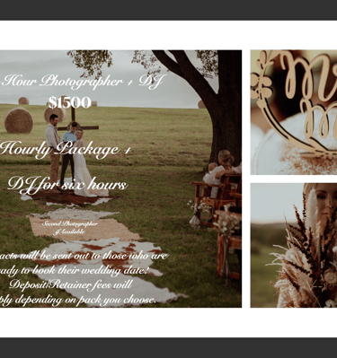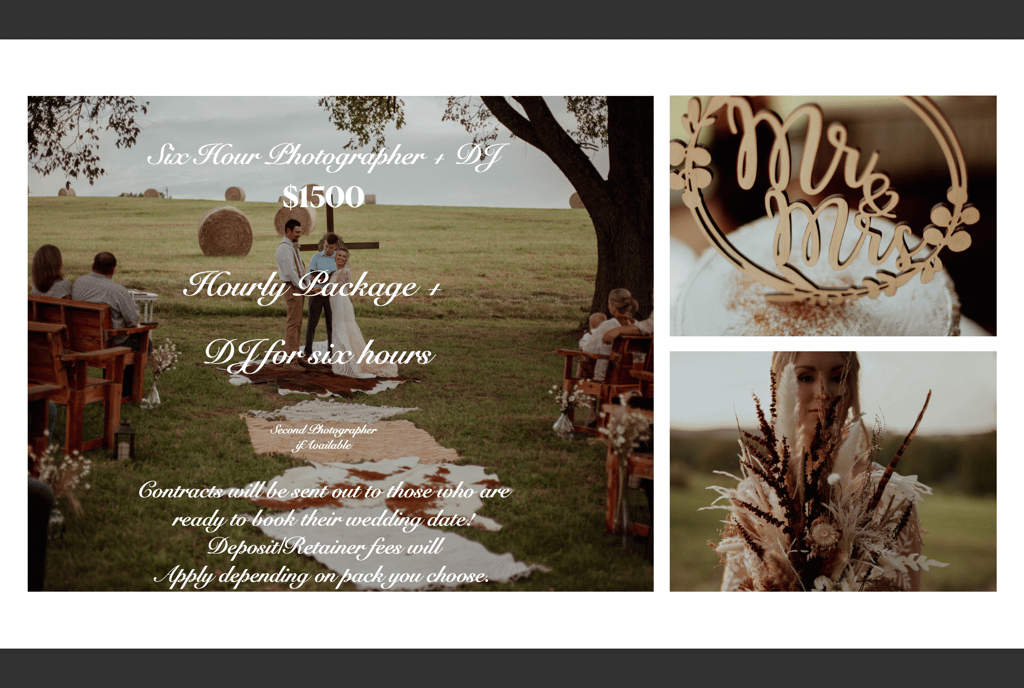 Explore our comprehensive wedding packages, including DJ services and second photographer options for your special day.